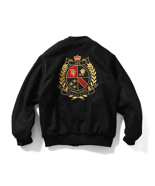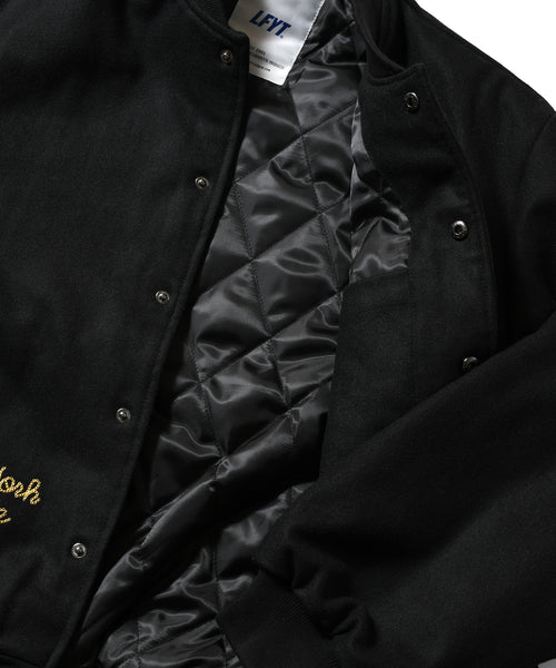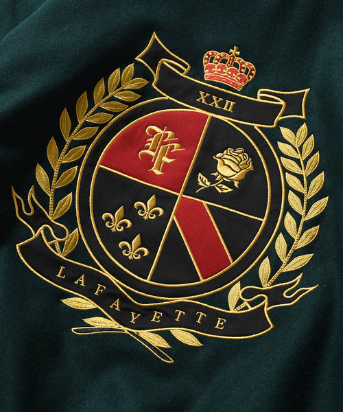 フロントはスナップボタン仕様で、胸にはモノグラムLFロゴ、右サイドポケット下にはチェーンステッチの刺繍を施し、